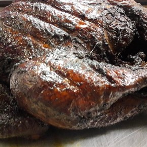 CREOLE SMOKED TURKEY, Marinated in a patent pending blend of Moe’s Magic Dust Creole Cuisine seasoning and traditional Creole herbs and spices, we slow smoke this turkey for several hours. The meat is juicy and heavily spiced throughout, but not so strong that it over whelms the light smokiness. The skin is also fantastic—you’ll want to eat it by itself. Average weight is 20-24 pounds and feeds 30 to 45 people.